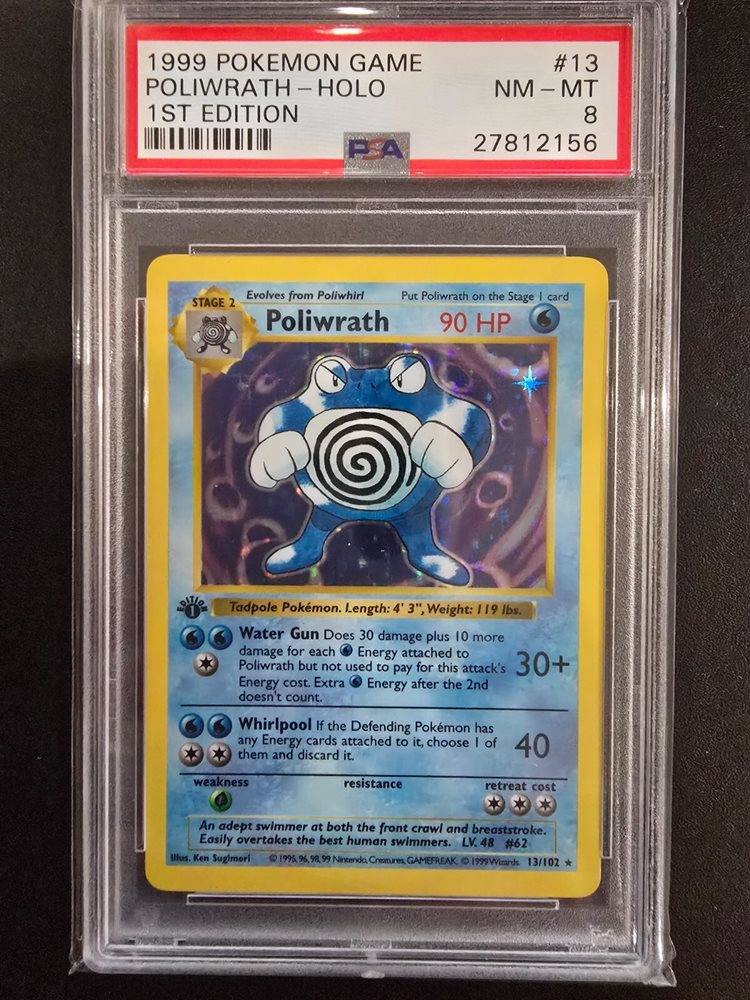 1ST EDITION SHADOWLESS POLIWRATH 13/102 - BASE SET PSA 8
