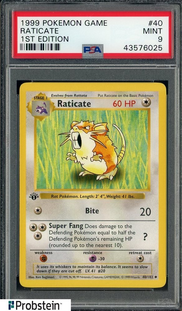 1999 Pokemon Game #40 Raticate 1st Edition PSA 9 MINT