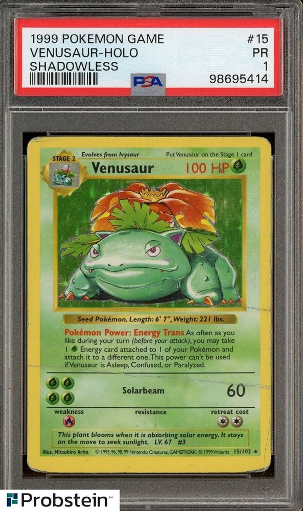 1999 Pokemon Game Shadowless #15 Venusaur Holo PSA 1 PR