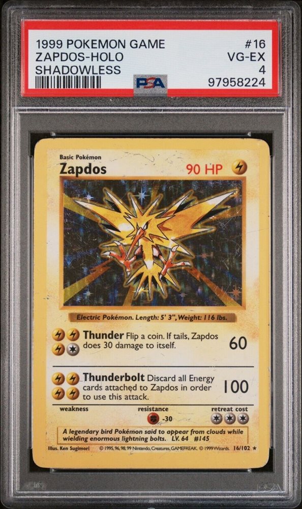 1999 Pokemon Base Set Zapdos Shadowless Holo #16 PSA 4