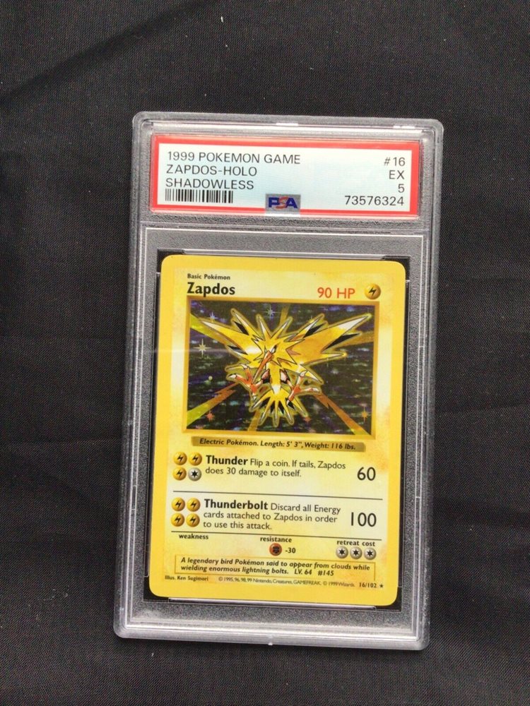 Pokemon Cards: Base Set Shadowless Rare Holo: Zapdos 16/102 PSA 5