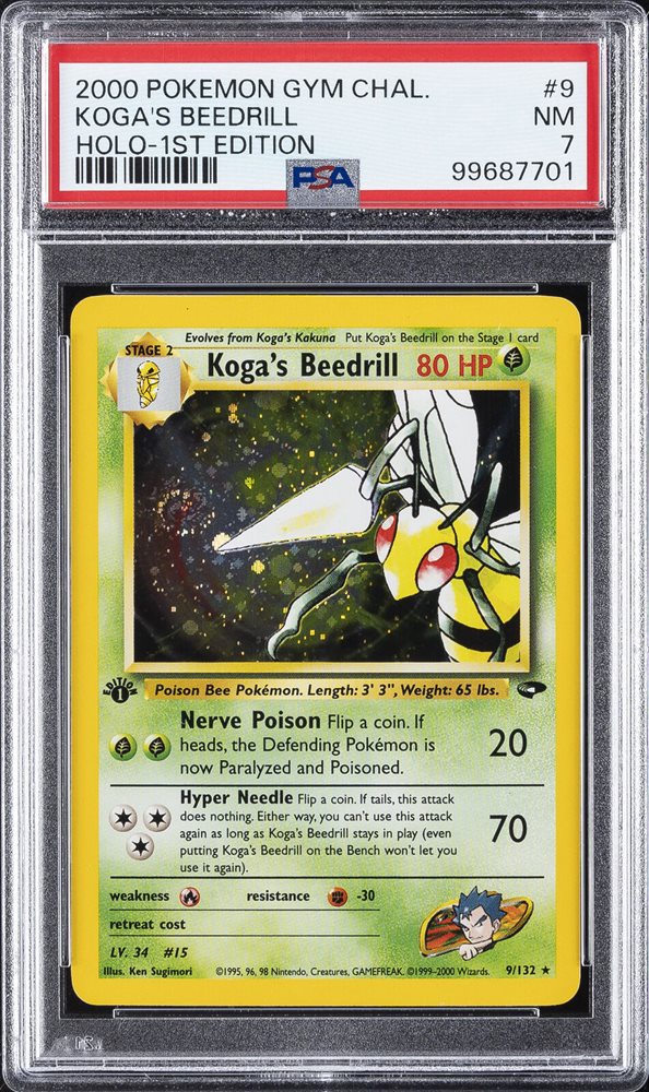 2000 POKEMON GYM CHALLENGE HOLO-1ST EDITION #9 KOGA'S BEEDRILL PSA 7
