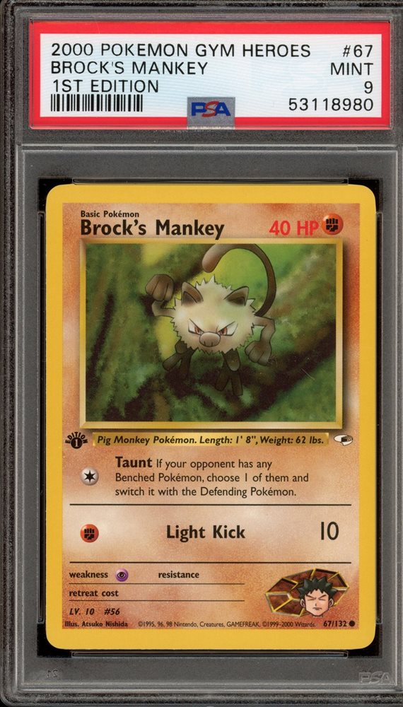 Pokemon Brock's Mankey Gym Heroes 1st Edition #67 PSA 9 Mint