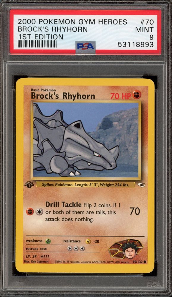 Pokemon Brock's Rhyhorn Gym Heroes 1st Edition #70 PSA 9 Mint