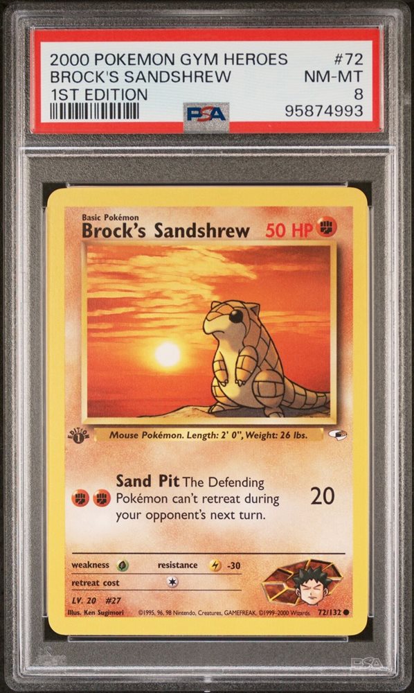 2000 POKEMON GYM HEROES 1ST ED #72 BROCK'S SANDSHREW PSA 8