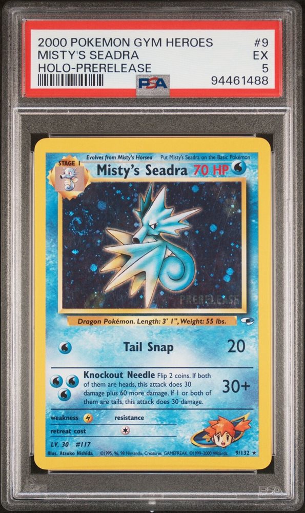 2000 POKEMON GYM HEROES HOLO-PRERELEASE #9 MISTY'S SEADRA PSA 5