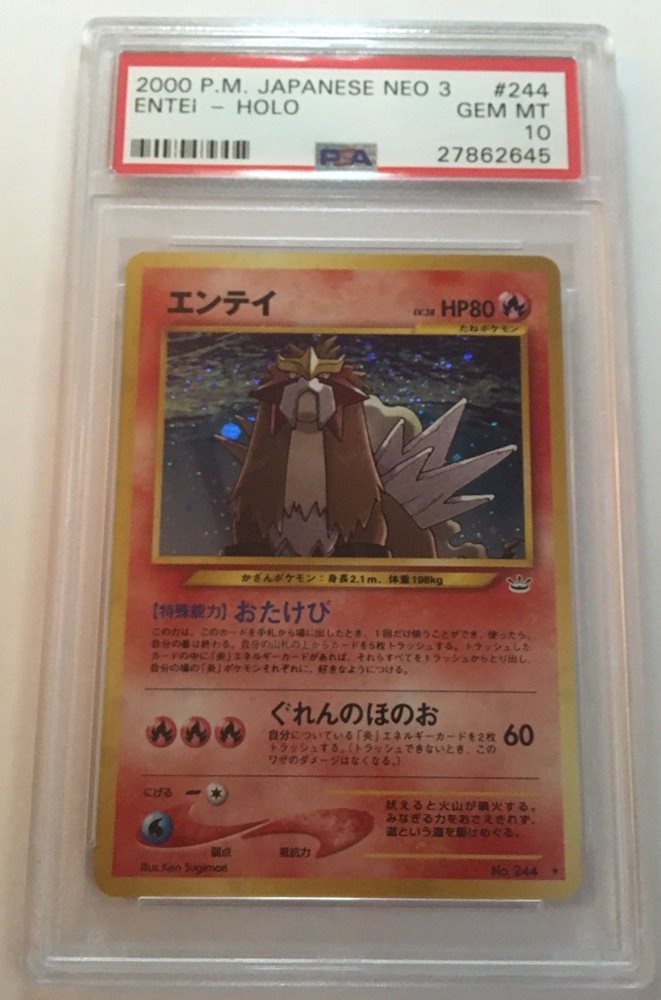PSA 10 GEM MINT Japanese Entei Neo 3 Revelation Holo Rare Pokemon Card #244