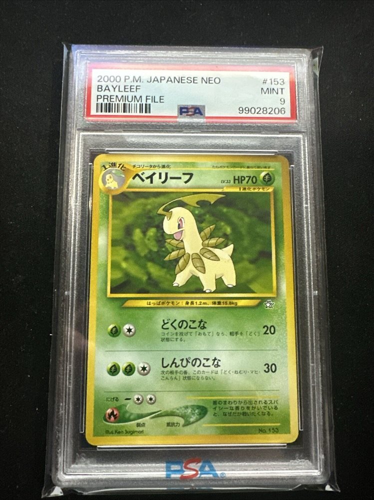 PSA 9 MINT Bayleef Japanese Neo Premium File #153 2000 Pokemon Card