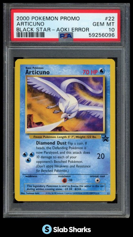 2000 POKEMON BLACK STAR PROMOS #22 ARTICUNO AOKI ERROR PSA 10