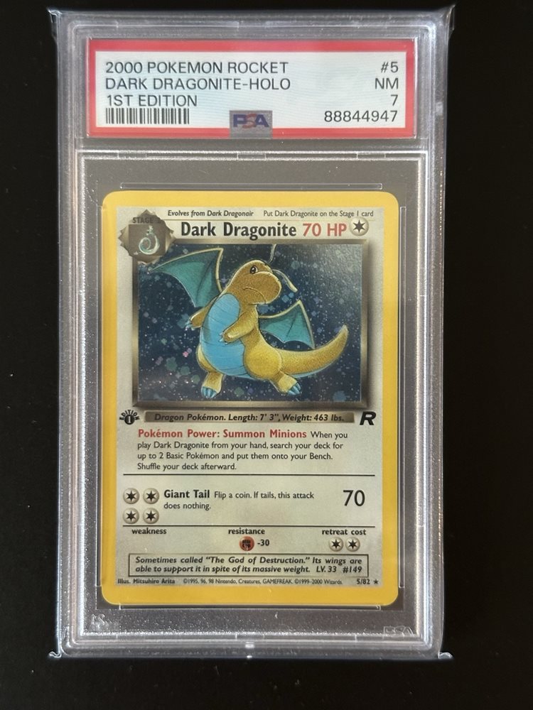 2000 Team Rocket 1st Edition 5/82 Dark Dragonite Holo Pokemon -PSA 7 -