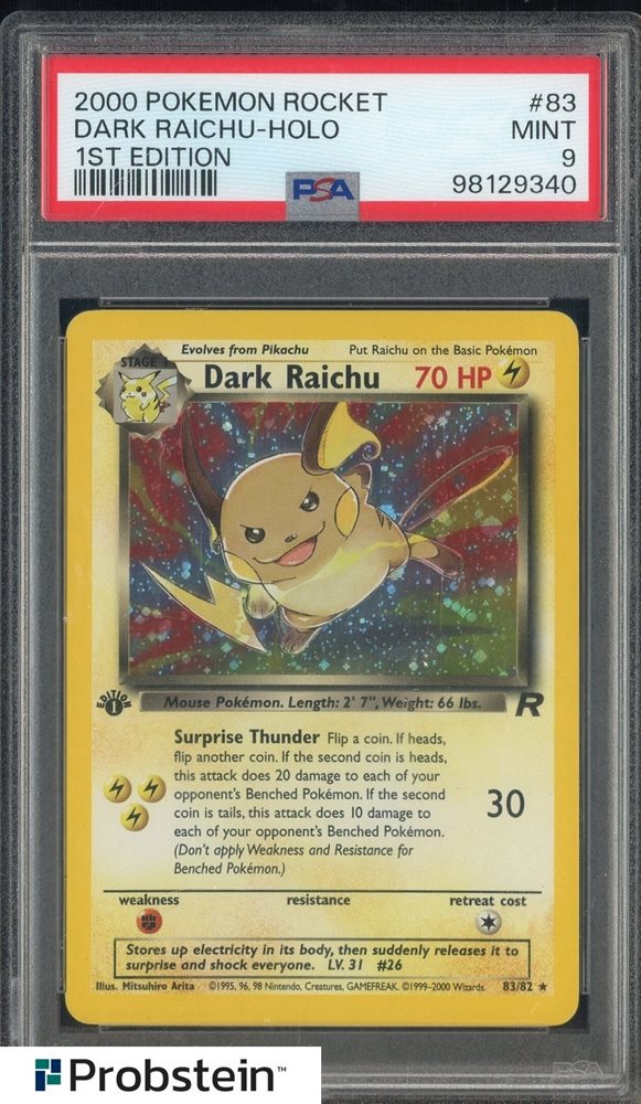 2000 Pokemon Rocket 1st Edition #83 Dark Raichu Holo PSA 9 MINT