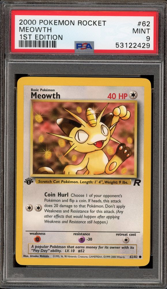 Pokemon Meowth Team Rocket 1st Edition #62 PSA 9 Mint
