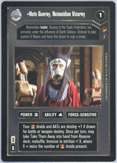 Auction Prices Realized Tcg Cards 2001 DECIPHER STAR WARS CCG THEED PALACE Nute Gunray, Neimoidian Viceroy