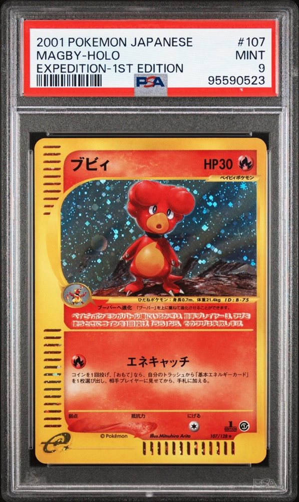 PSA 9 Mint Japanese Pokemon Magby Expedition Base Set E Series Holo 2001 #107