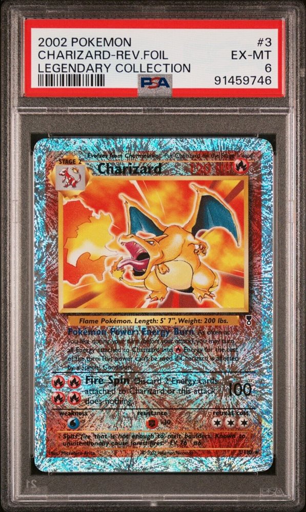2002 Pokemon Legendary Collection Charizard REVERSE FOIL HOLO 3/110 PSA 6