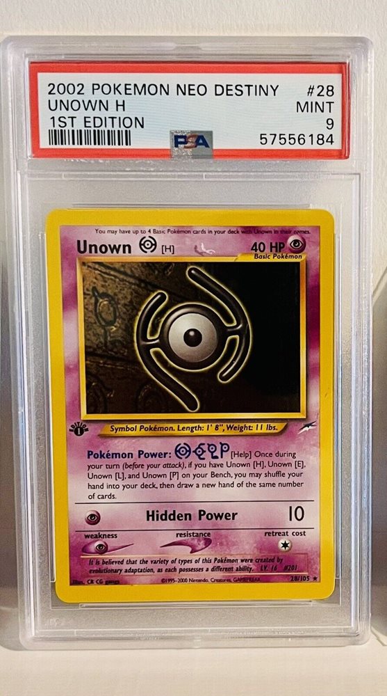 Pokémon Unown U 1st Ed - Neo Destiny PSA 9 + Extras Pictured