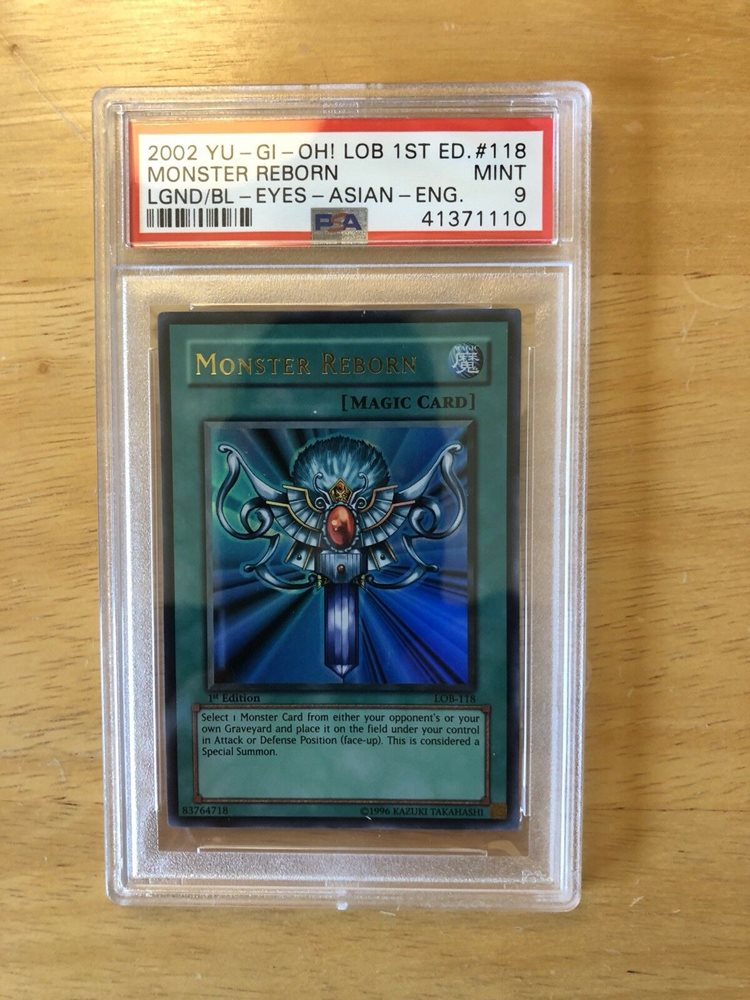 2002 Yugioh Monster Reborn Ultra Rare 1st Ed. LOB-118 PSA 9 Asian English