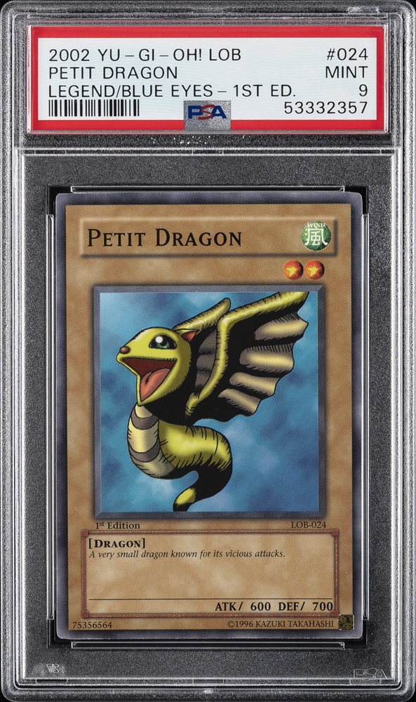 2002 YU-GI-OH! LOB-LEGEND OF BLUE EYES WHITE DRAGON 1ST ED PETIT DRAGON PSA 9