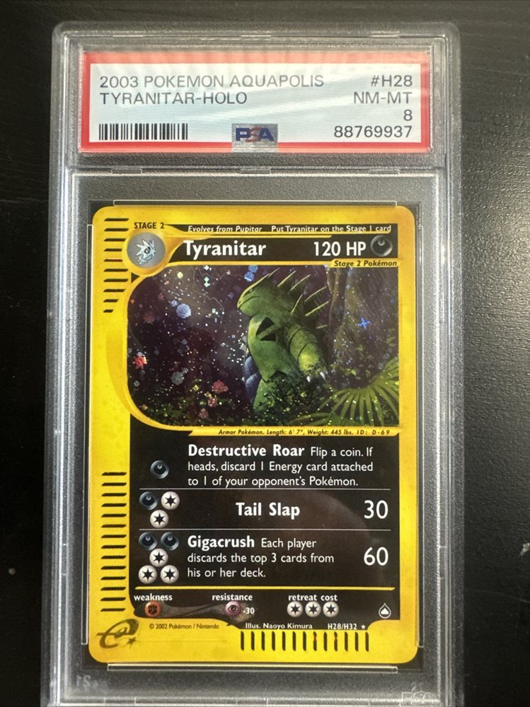 PSA 8 NM-MT 2003 Aquapolis Tyranitar Holo Foil H28/H32 Pokemon Card