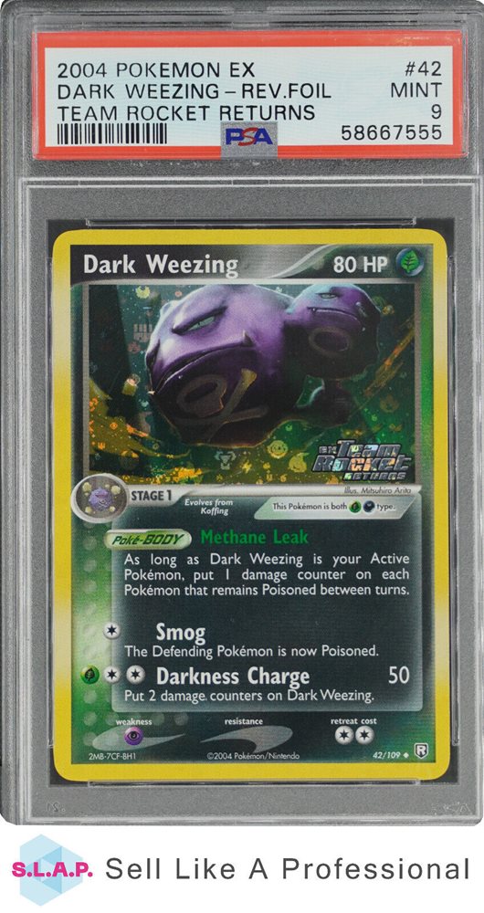 2004 POKEMON EX TEAM ROCKET RETURNS 42 DARK WEEZING-REV.FOIL PSA 9