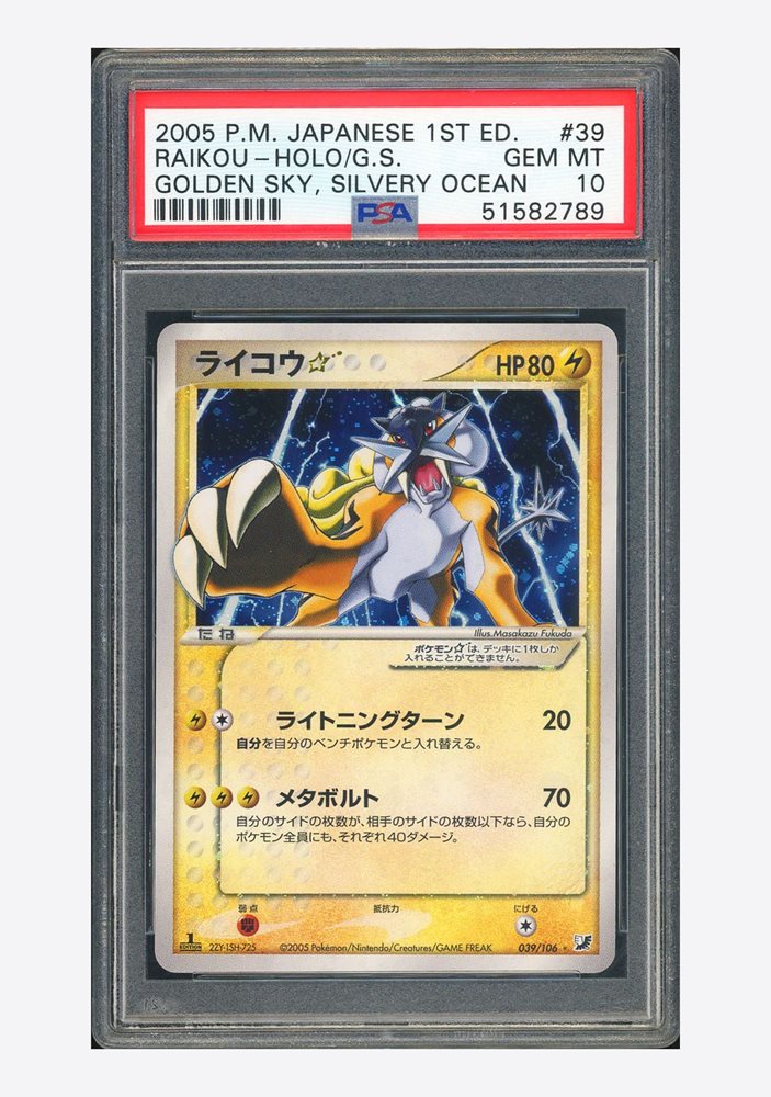 Pokemon PSA10 Raikou Gold Star Holo 2005 #039 Golden Sky Silver Ocean 1ED JPN