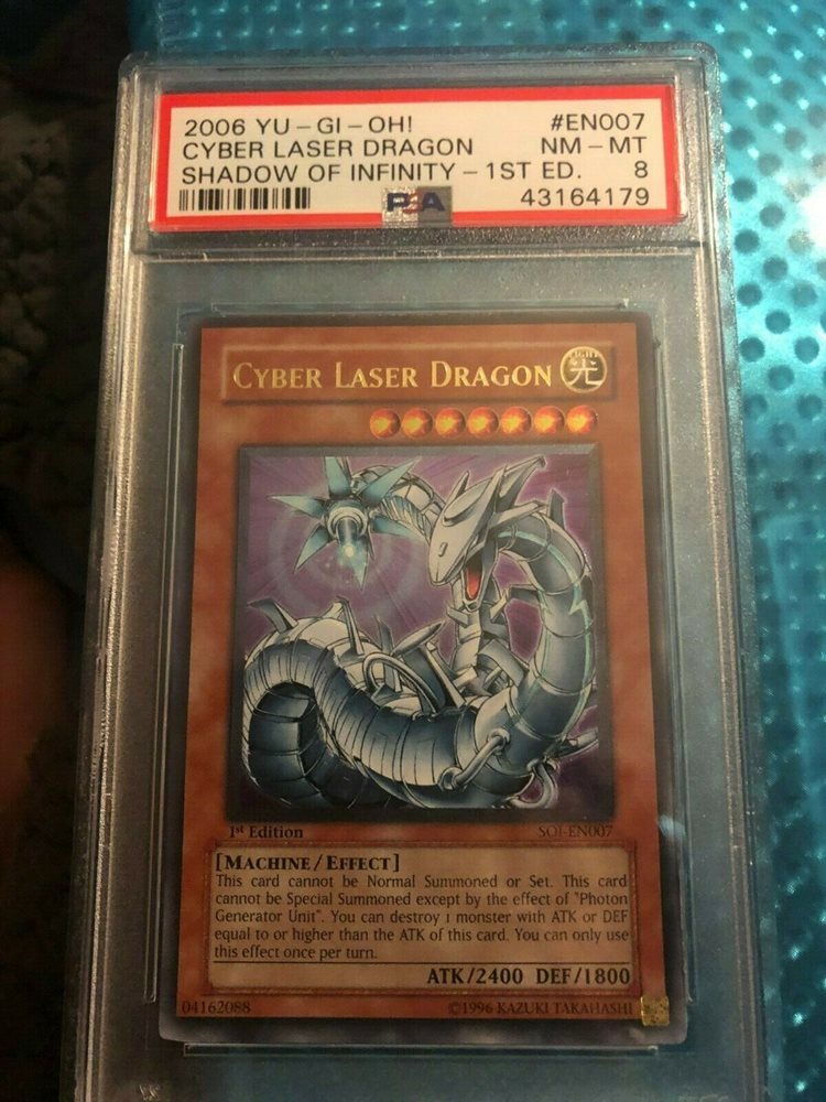 YUGIOH 1ST ED SOI-EN007 CYBER LASER DRAGON ULTIMATE RARE HOLO PSA 8 NM-MINT #*