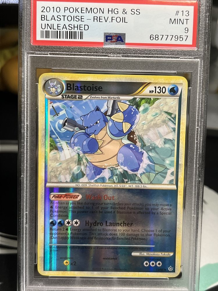 PSA 9 2010 HG&SS Unleashed Reverse Foil Holo Blastoise 13/95 Pokemon Card