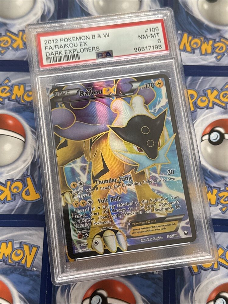 2012 Pokémon B & W Full Art - RAIKOU EX - Dark Explorers - #105 - NM-MT - PSA 8