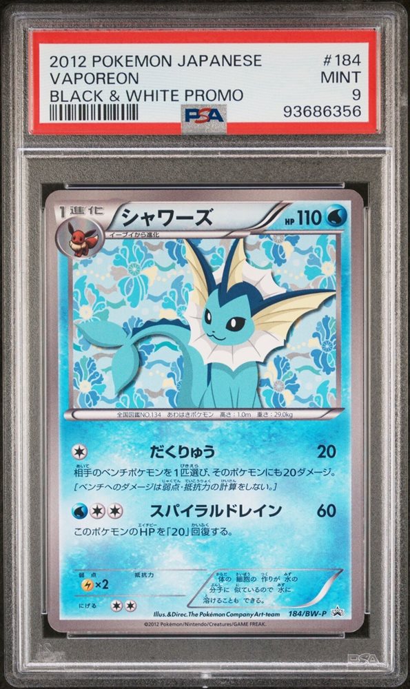 2012 POKEMON JAPANESE BLACK & WHITE PROMO #184 VAPOREON PSA 9