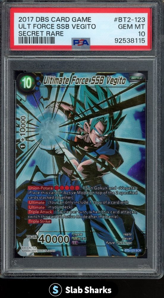 2017 DRAGON BALL S ULTIMATE FORCE SSB VEGITO SECRET RARE #BT2-123 PSA 10