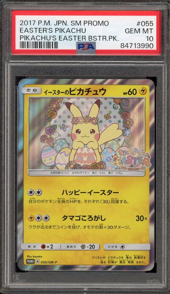 Pokemon Easter's Pikachu Japanese Holo Promo 055/SM-P PSA 10 Gem Mint