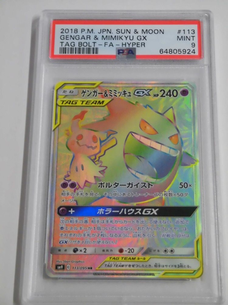 PSA 9 Pokemon Card Gengar & Mimikyu GX HR 113/095 SM5S Japanese Sun & Moon R9