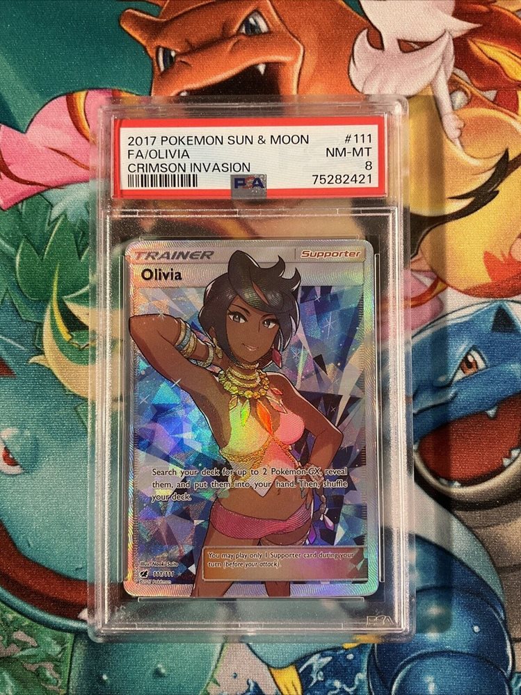 2017 Pokémon Sun & Moon Crimson Invasion 111 Full Art Olivia PSA 8 NM-MT