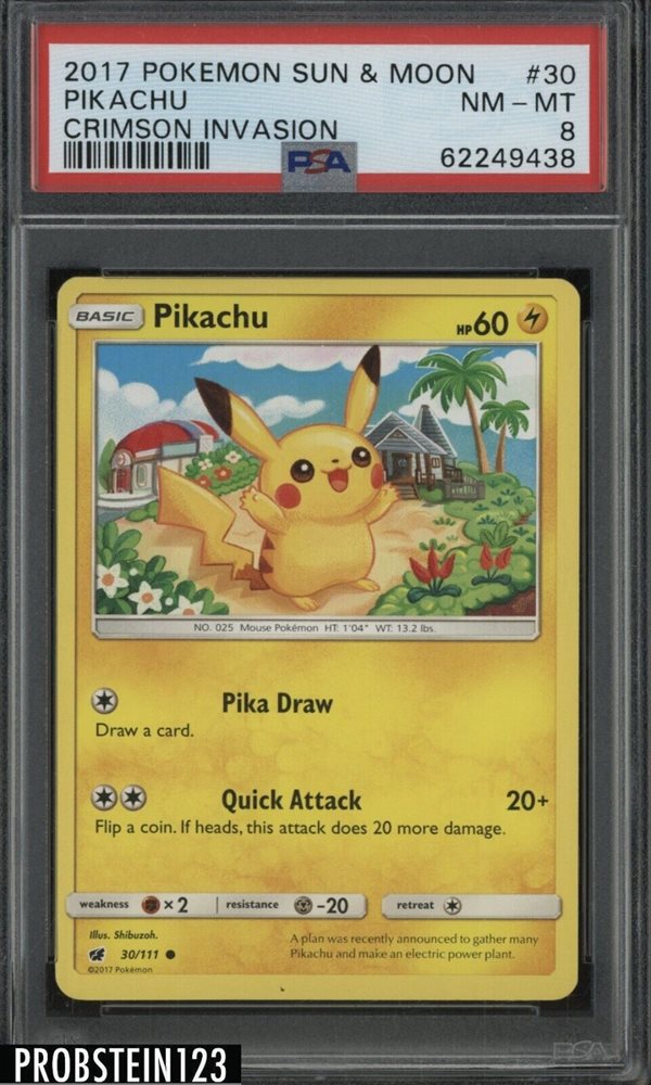 2017 Pokemon Sun & Moon Pikachu Crimson Invasion #30 PSA 8 NM-MT