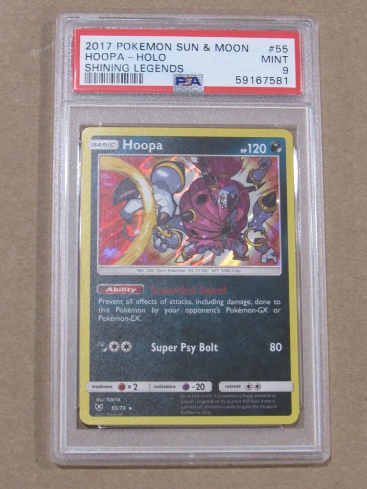 2017 POKEMON SUN & MOON SHINING LEGENDS HOOPA HOLO #55 PSA 9 MINT