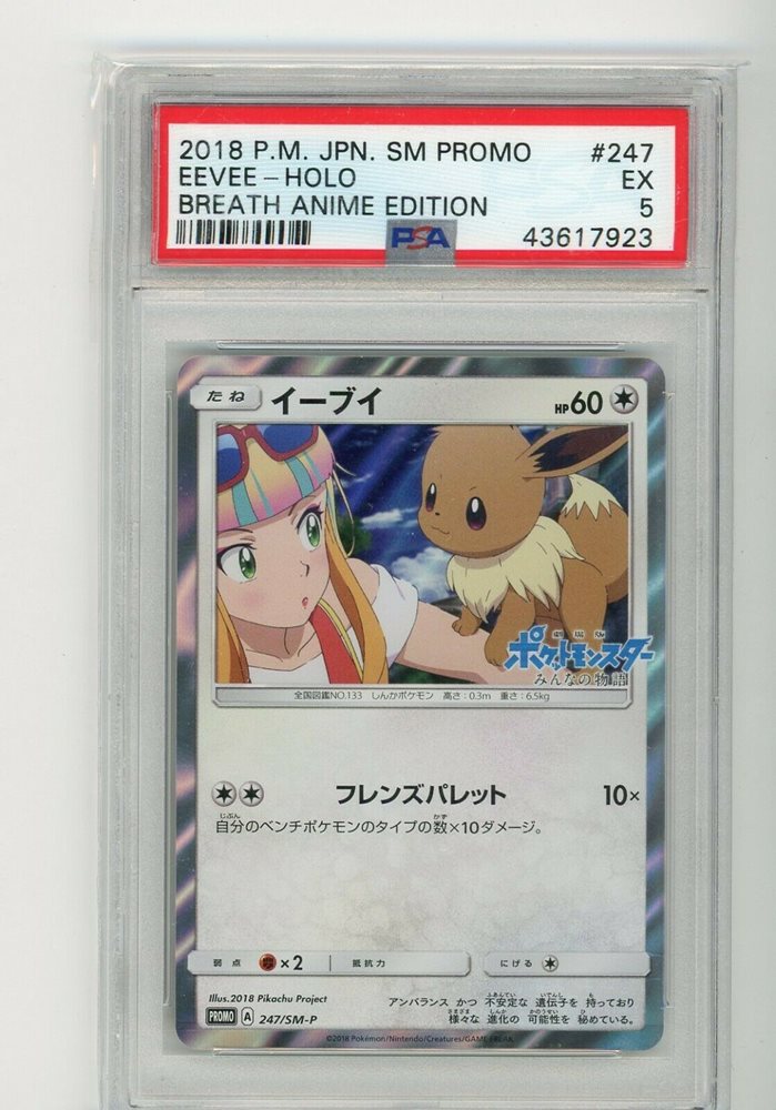 PSA 5 POKEMON JAPANESE PROMO EEVEE BREATH ANIME EDITION 247/SM-P 2018 HOLO