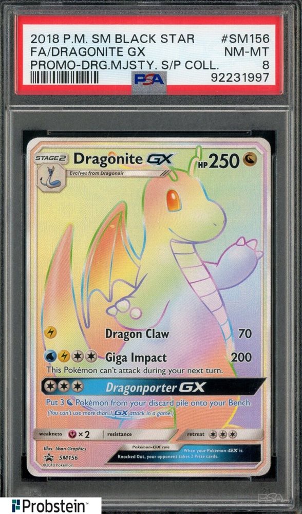 2018 Pokemon SM Black Star Promo Dragon Majesty #SM156 FA Dragonite Gx PSA 8