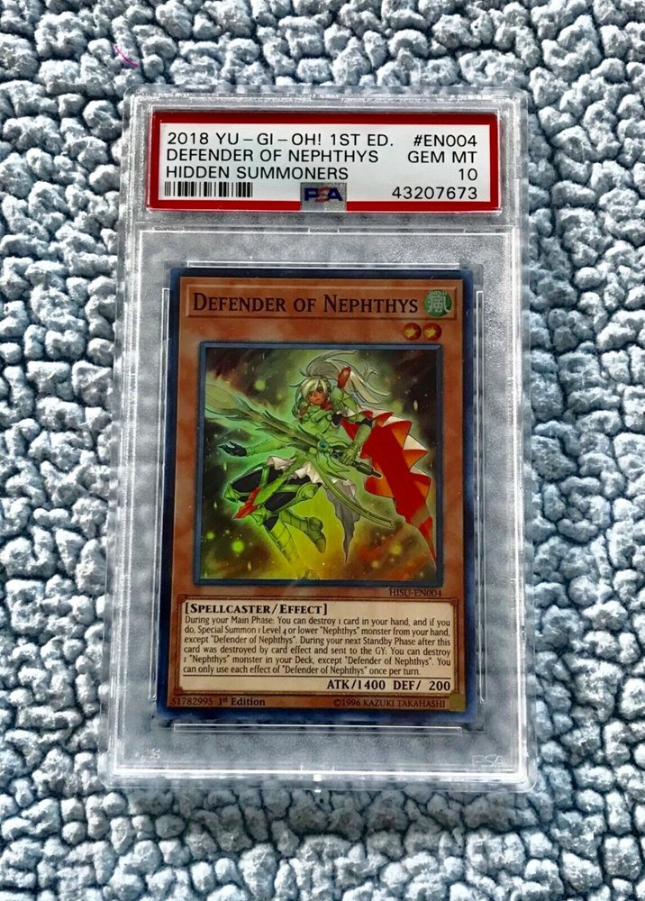 PSA Gem MT 10 YU GI OH # EN004 1st Ed Defender of Nephthys trading card game tcg