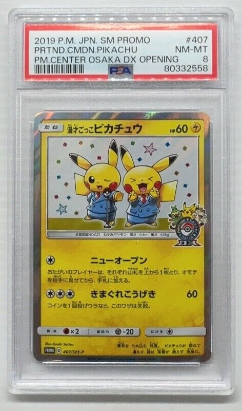 2019 Pokemon Japanese Osaka Center DX Promo Pretend Comedian Pikachu #407 PSA 8