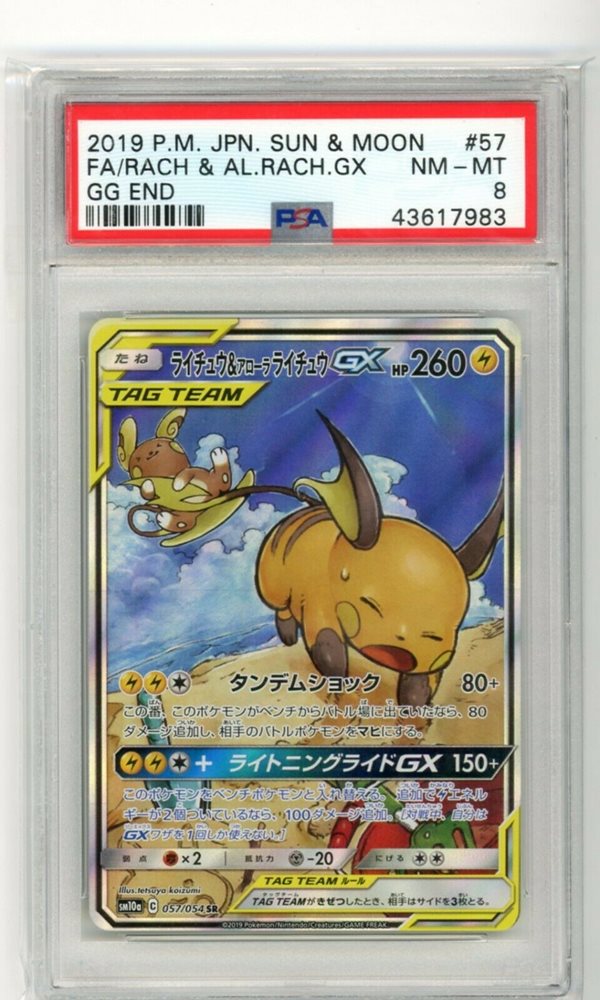 PSA 8 POKEMON JAPANESE RAICHU & ALOLAN RAICHU GX GG END SM 57/54 SR 2019