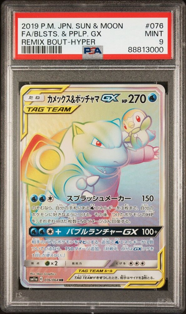 PSA 9 2019 POKEMON JAPANESE SUN & MOON REMIX BOUT 076 FULL ART/BLASTOISE & PIPLU