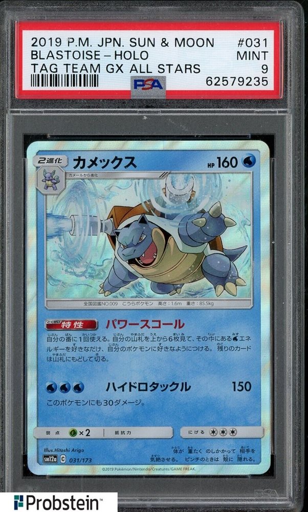2019 Pokemon Japanese Sun & Moon Tag Team Gx All Stars Blastoise Holo PSA 9