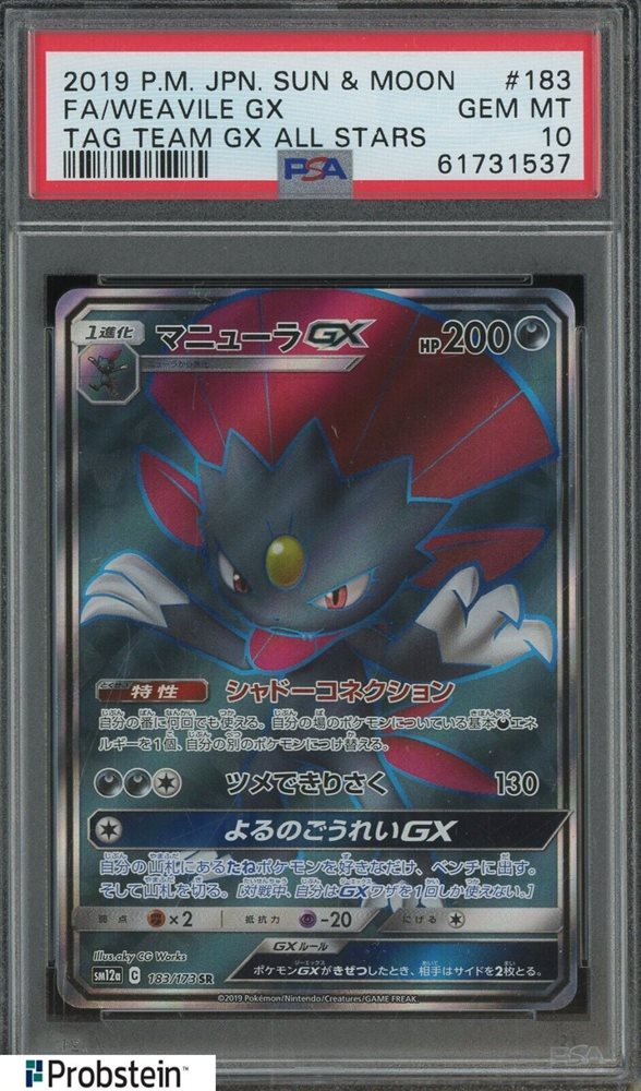2019 Pokemon Japanese Sun & Moon Tag Team Gx All Stars FA Weavile Gx PSA 10