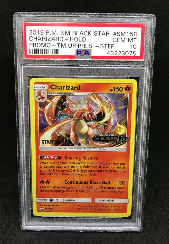 Pokemon Team Up Prerelease Staff Charizard SM158 Black Star GEM MINT PSA 10
