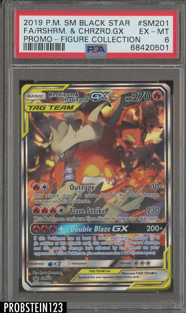 2019 Pokemon SM Black Star Promo Figure #SM201 Reshiram & Charizard FA PSA 6