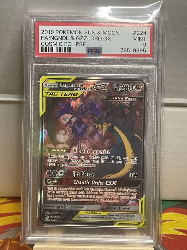 2019 Pokemon Naganadel & Guzzlord GX 224/236 Alternative Full Art PSA 9 TAG TEAM
