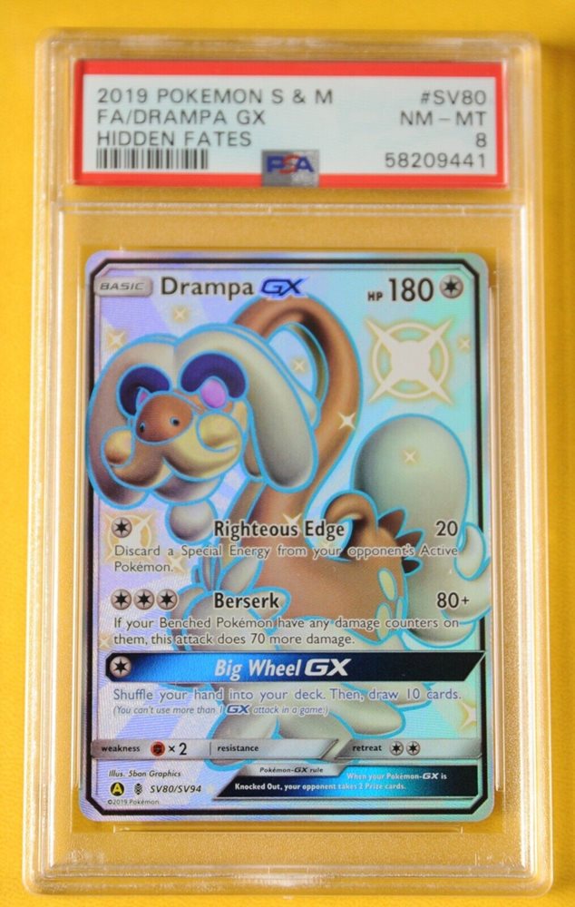 POKEMON CARD PSA 8 N/MINT - MINT DRAMPA FULL ART GX HIDDEN FATES
