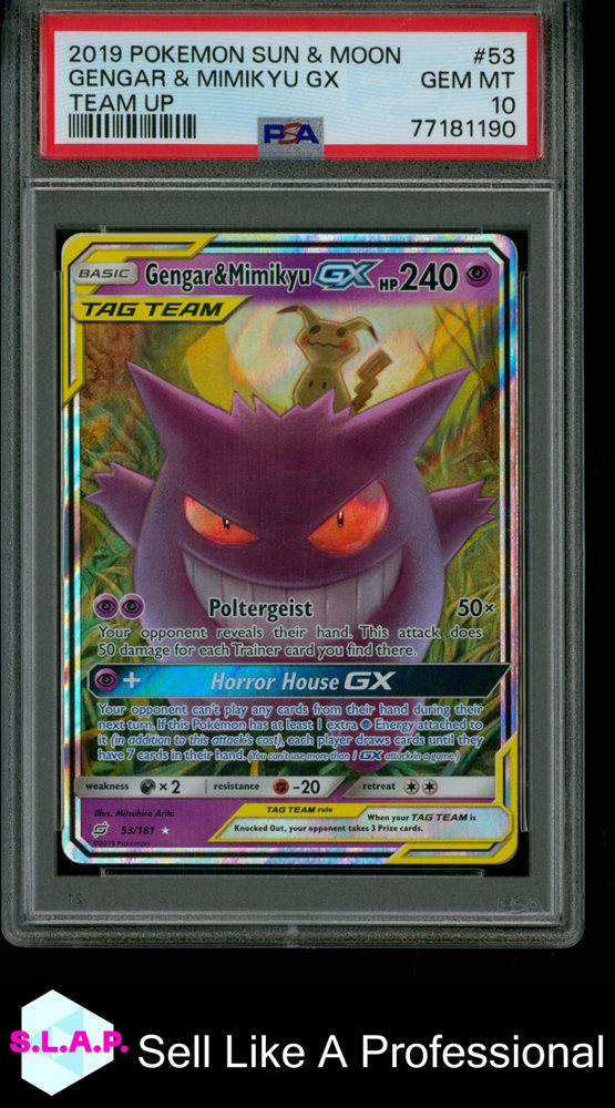 GENGAR & MIMIKYU SUN & MOON TEAM UP #53 2019 HOLO ENGLISH PSA 10