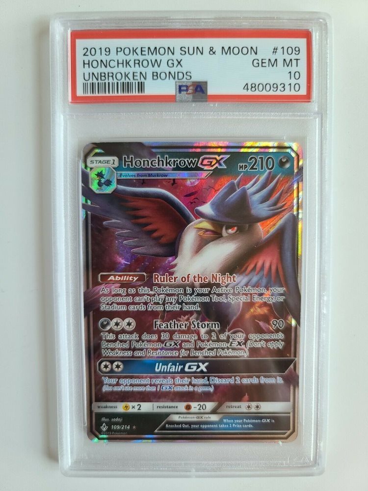 Pokemon S&M Unbroken Bonds Honchkrow GX 109/214 PSA 10