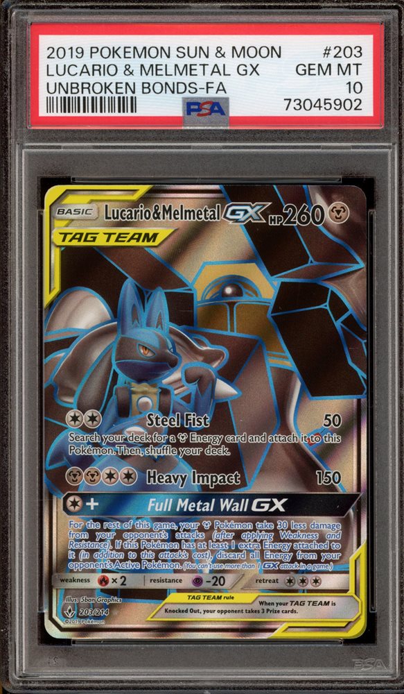 Pokemon Lucario & Melmetal GX Unbroken Bonds Full Art #203 PSA 10 Gem Mint